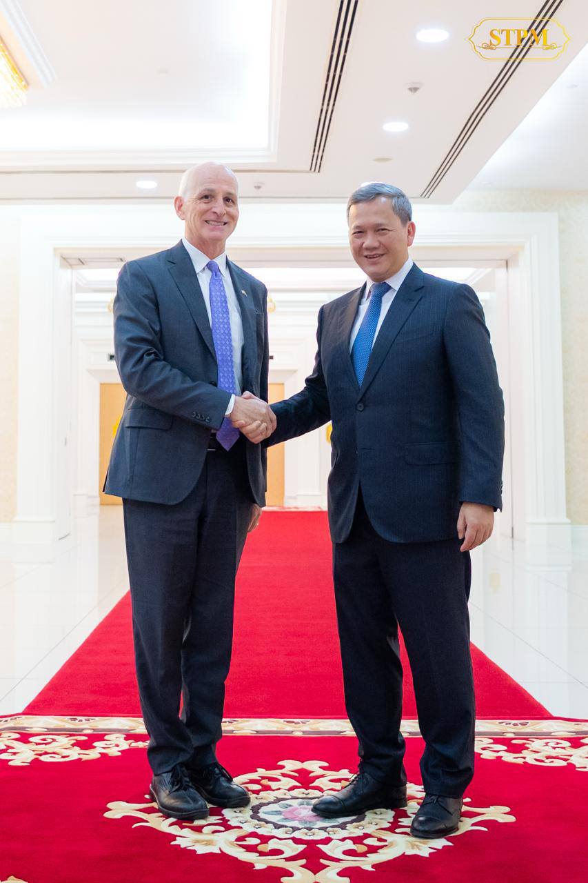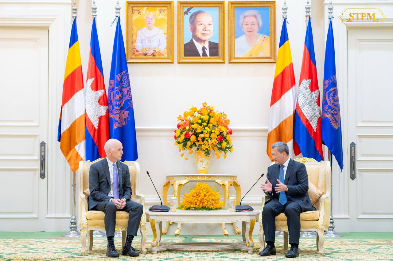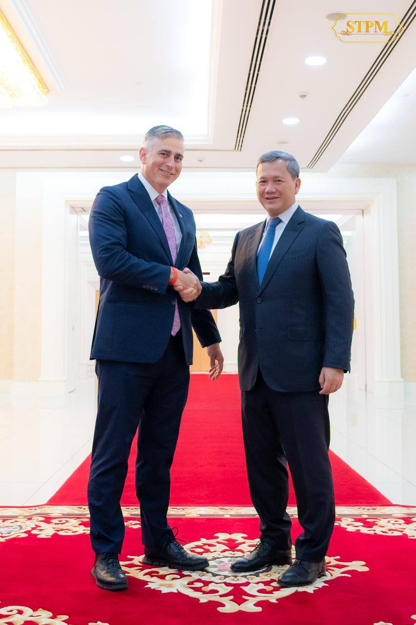 On the afternoon of 26 September 2025, at the Peace Palace, Samdech Moha Borvor Thipadei Hun Manet, Prime Minister of the Kingdom of Cambodia, received a courtesy call from a United States Congressional delegation led by His Excellency Adam Smith, Congressman from Washington State, who was accompanied by His Excellency Michael Baumgartner, Congressman from Washington State, and Her Excellency Chrissy Houlahan, Congresswoman from Pennsylvania.