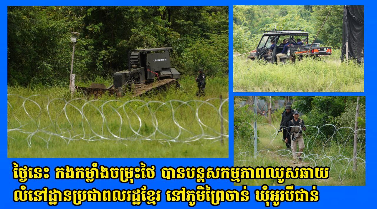 ថ្ងៃនេះ កងកម្លាំងចម្រុះថៃ បានបន្តសកម្មភាពឈូសឆាយលំនៅដ្ឋានប្រជាពលរដ្ឋខ្មែរ នៅភូមិព្រៃចាន់ ឃុំអូរបីជាន់