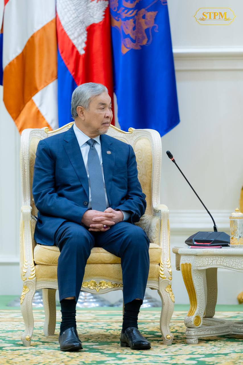 នាព្រឹក ថ្ងៃទី១៤ ខែតុលា ឆ្នាំ២០២៥, សម្តេចមហាបវរធិបតី ហ៊ុន ម៉ាណែត នាយករដ្ឋមន្ត្រីនៃព្រះរាជាណាចក្រកម្ពុជា បានអនុញ្ញាតឱ្យ ឯកឧត្តម Dato’ Sri Dr. Ahmad Zahid Hamidi ឧបនាយករដ្ឋមន្ត្រី និងជារដ្ឋមន្ត្រីក្រសួងអភិវឌ្ឍន៍ជនបទ និងតំបន់ នៃប្រទេសម៉ាឡេស៊ី ចូលជួបសម្ដែងការគួរសម និងពិភាក្សាការងារ នៅវិមានសន្ដិភាព។