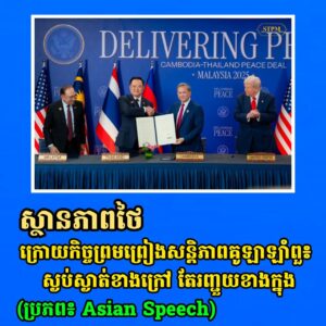 កិច្ចព្រមព្រៀងសន្តិភាពកម្ពុជា–ថៃ ដែលបានចុះហត្ថលេខានៅទីក្រុងគួឡាឡាំពួ ប្រទេសម៉ាឡេស៊ី នៅថ្ងៃ ទី២៦ ខែតុលា ឆ្នាំ២០២៥ គឺជាចំណុចបញ្ចប់នៃភាពតានតឹងជាយូរឆ្នាំតាមបណ្តោយព្រំដែនកម្ពុជា-ថៃ។ កិច្ចព្រមព្រៀងនេះមិនត្រឹមតែជាសញ្ញានៃការសង្រ្គោះសន្តិភាពនយោបាយទេ ប៉ុន្តែជាចំណុចផ្លាស់ប្តូរប្រវត្តិ សាស្ត្រមួយ ដែលធ្វើឲ្យប្រទេសទាំងពីរឈានចូលក្នុងកិច្ចសហការណ៍ដើម្បីសន្តិភាព និងការអភិវឌ្ឍន៍ ដំណាក់កាលថ្មីមួយ។