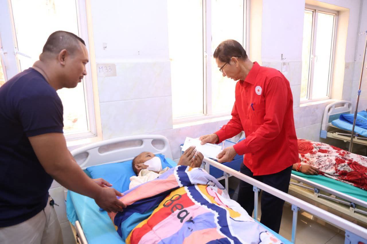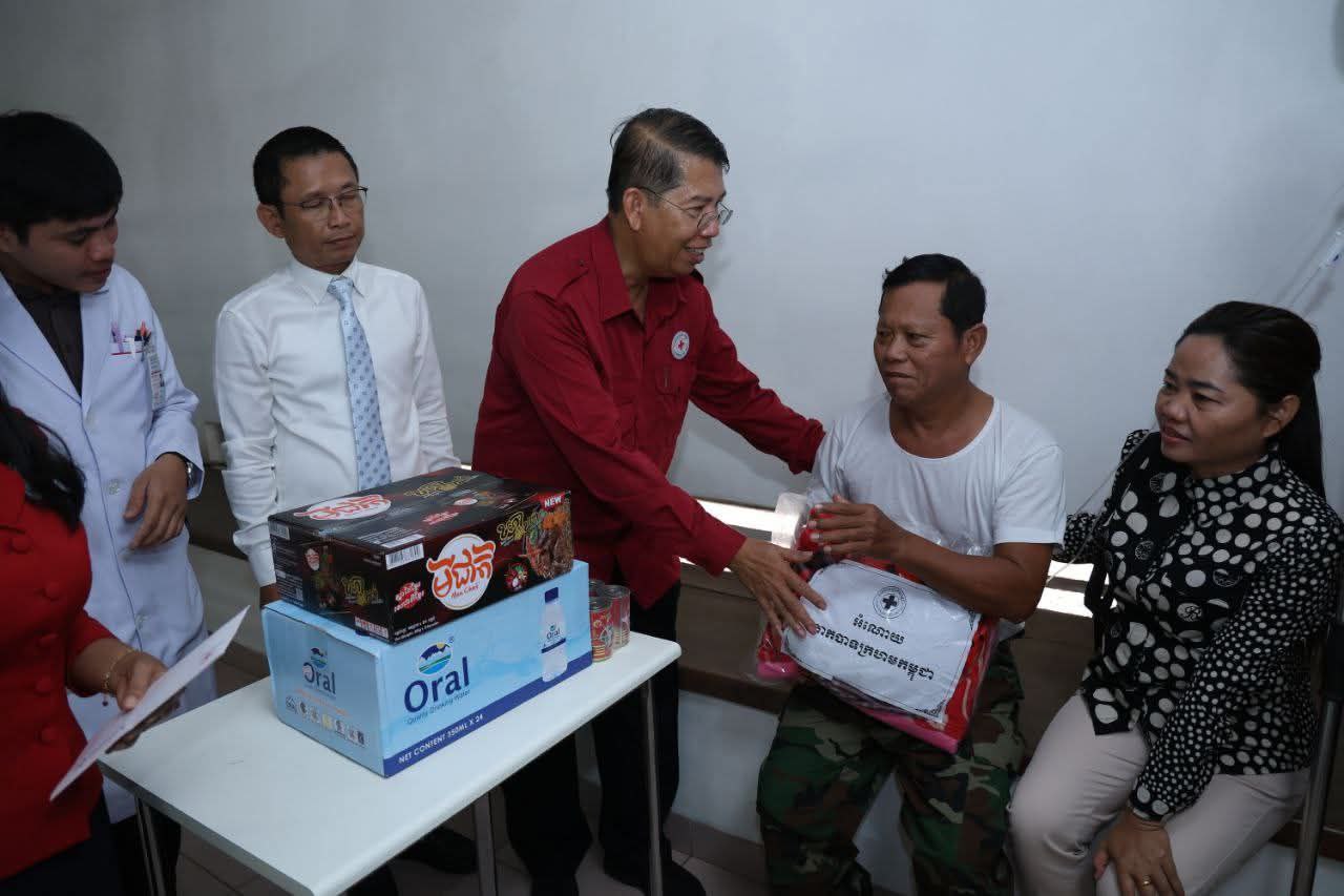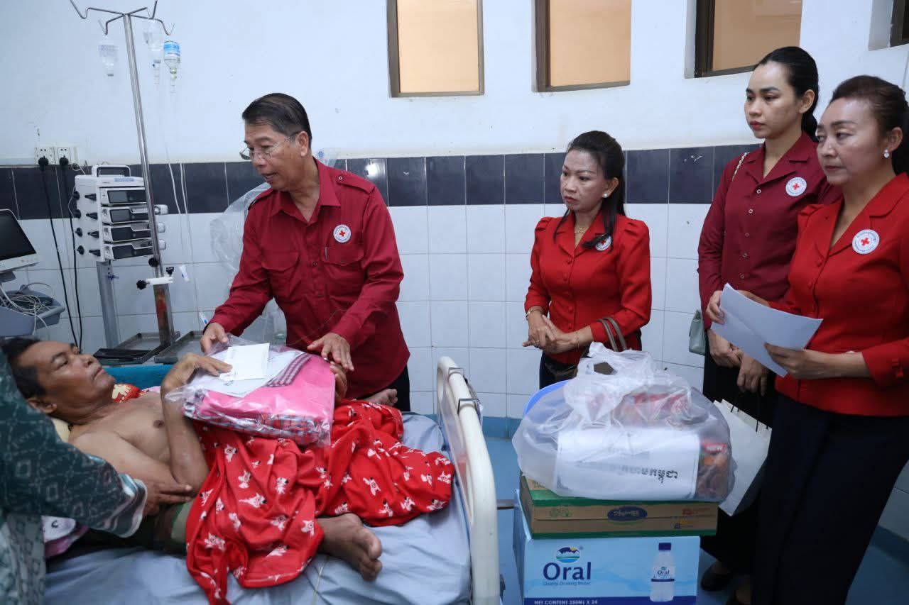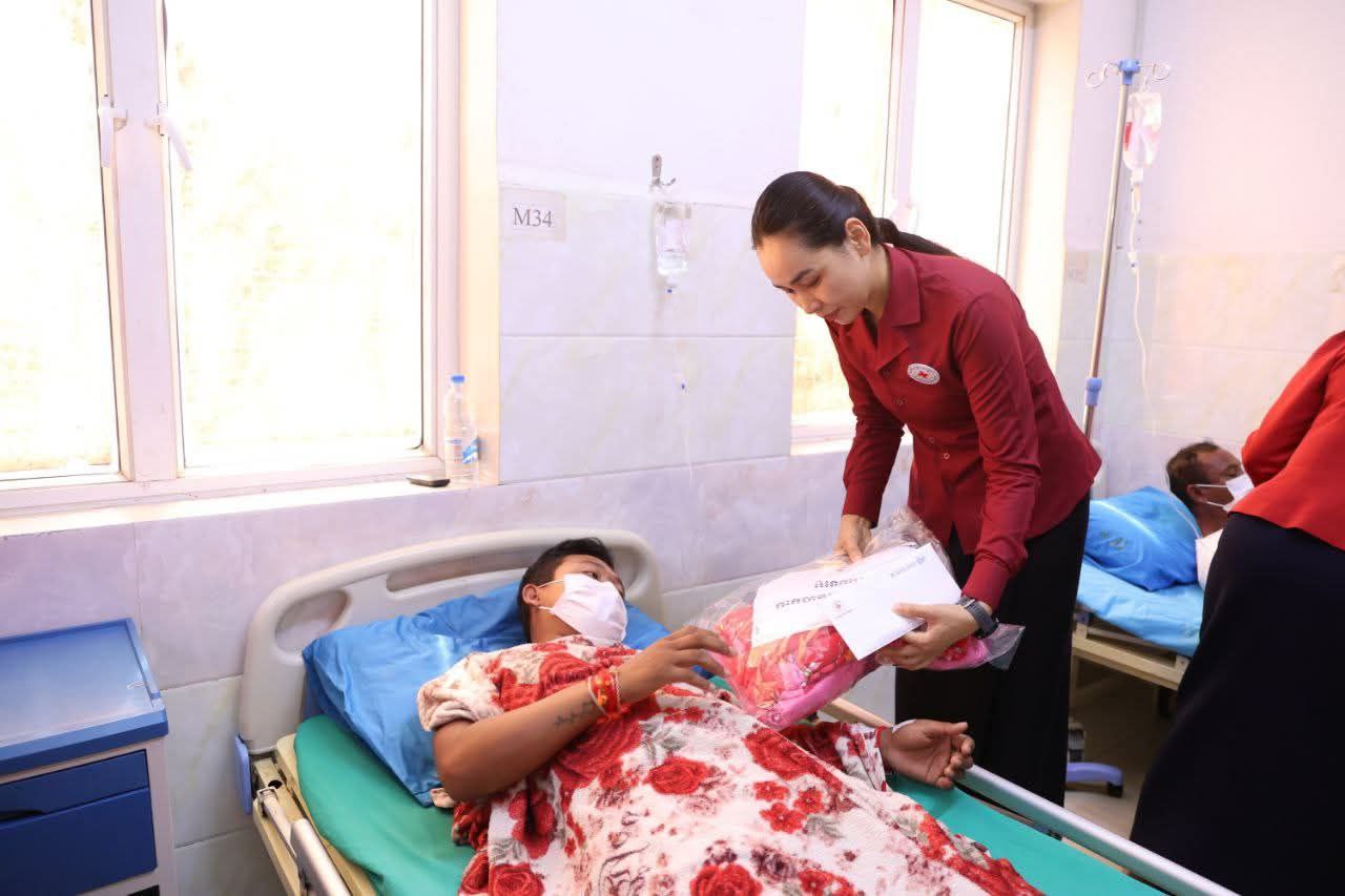 នៅព្រឹកថ្ងៃទី៧ ខែវិច្ឆិកា ឆ្នាំ២០២៥ កាកបាទក្រហមកម្ពុជា ក្រោមម្លប់ដ៏ឧត្តុង្គឧត្តមនៃ សម្តេចព្រះមហាក្សត្រី នរោត្តម មុនិនាថ សីហនុ ព្រះវររាជមាតាជាតិខ្មែរ គង់ប្រថាប់ជាព្រះប្រធានកិត្តិយស និងមានសម្តេចកិត្តិព្រឹទ្ធបណ្ឌិត ប៊ុន រ៉ានី ហ៊ុនសែន ជាប្រធាន បានចាត់ឯកឧត្តម យូ ឡាណា អគ្គលេខាធិការរងទី២ កាកបាទក្រហមកម្ពុជា និងសហការី អញ្ជើញនាំសួរសុខទុក្ខ និងនាំយកអំណោយជាថវិកា និងសម្ភារៈមួយចំនួនជូនយោធិន ឃួយ ឡាយ រងគ្រោះដោយសារមីន កាលថ្ងៃទី៣០ ខែតុលា ឆ្នាំ២០២៥ ដែលកំពុងទទួលការព្យាបាល នៅតាមមន្ទីរពេទ្យក្នុងរាជធានីភ្នំពេញ។