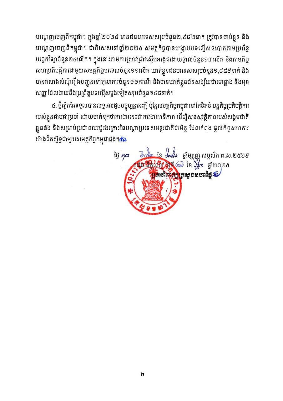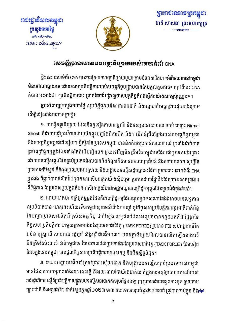 សូមអានសេចក្តីច្រានចោលរបស់ក្រសួងមហាផ្ទៃដូចខាងក្រោម៖