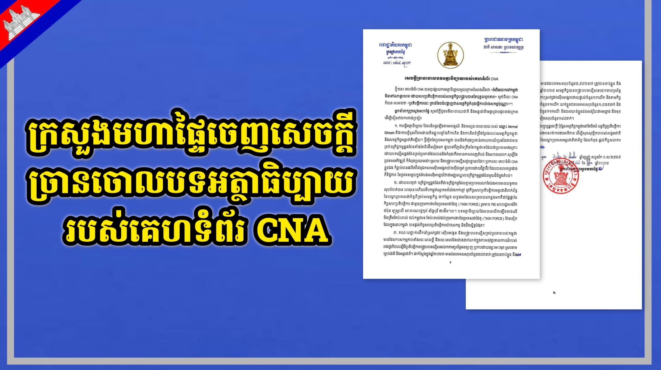 ក្រសួងមហាផ្ទៃចេញសេចក្តីច្រានចោលបទអត្ថាធិប្បាយរបស់គេហទំព័រ CNA ក្រសួងមហាផ្ទៃចេញសេចក្តីច្រានចោលបទអត្ថាធិប្បាយរបស់គេហទំព័រ CNA