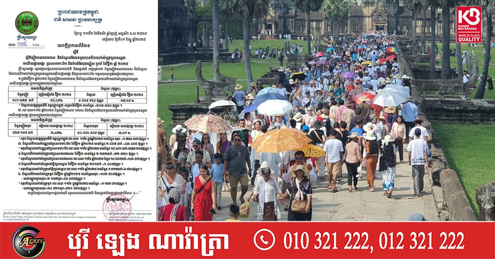 (ភ្នំពេញ)៖ របាយការណ៍ផ្លូវការរបស់គ្រឹះស្ថានអង្គរ ដែលជាស្ថាប័នប្រមូលចំណូល ពីការលក់សំបុត្រចូលទស្សនារមណីដ្ឋានអង្គរ ដែលបណ្តាញព័ត៌មាន Fresh News ទទួលបាននៅថ្ងៃទី២ ខែធ្នូ ឆ្នាំ២០២៥នេះបានបញ្ជាក់ថា នៅរយៈពេល១១ខែឆ្នាំនេះ គ្រឹះស្ថានអង្គរប្រមូលចំណូលបាន ៤០លានដុល្លារ ពីការលក់សំបុត្រជូនផ្ញើចូលទស្សនារមណីដ្ឋានអង្គរ និងប្រាសាទកោះកែរ ធ្លាក់ចុះ៣.៤១% បើធៀបរយៈពេលដូចគ្នាឆ្នាំ២០២៤។