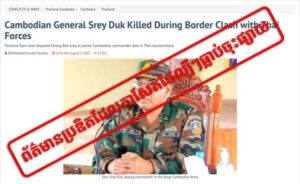 ក្រសួងការពារជាតិនៃព្រះរាជាណាចក្រកម្ពុជា សូមបដិសេធ និងច្រានចោលទាំងស្រុង ចំពោះការចោទប្រកាន់របស់កងទ័ពភូមិភាគទី២ថៃមកលើកម្ពុជា ក្នុងគោលបំណងបំភ័ន្តសហគមន៍អន្តរជាតិ និងលាក់កំបាំងនូវមហិច្ឆតារំលោភបំពានខុសច្បាប់របស់ខ្លួនចូលមកដែនអធិបតេយ្យស្របច្បាប់របស់កម្ពុជា។