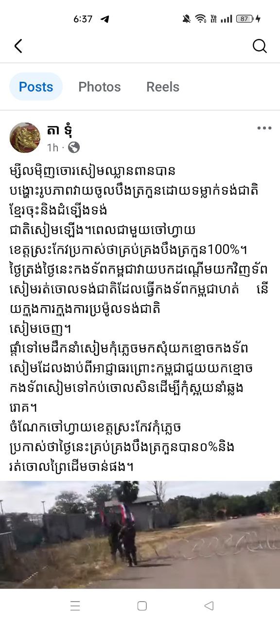 យោងតាមការបង្ហោះផ្សាយនៅក្នុងហ្វេសប៊ុកឈ្មោះថា «តាទុំ» នៅល្ងាចថ្ងៃទី១១ ខែធ្នូ ឆ្នាំ២០២៥ បានបញ្ជាក់ថា៖ ម្សិលមិញចោរសៀមឈ្លានពាន បានបង្ហោះរូបភាពវាយចូលបឹងត្រកួនដោយទម្លាក់ទង់ជាតិខ្មែរចុះ និងដំឡើងទង់ជាតិសៀមឡើង។ ពេលជាមួយចៅហ្វាយខេត្តស្រះកែវប្រកាសថា គ្រប់គ្រងបឹងត្រកួន១០០%។